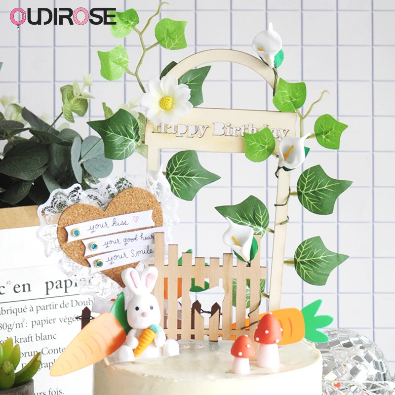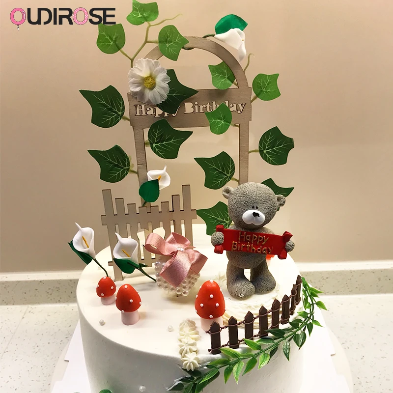 Luxury Happy Birthday Cake Topper Decor Leaf Door Mushroom Baking Cakes Toppers Anniversary Wedding Party